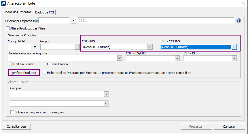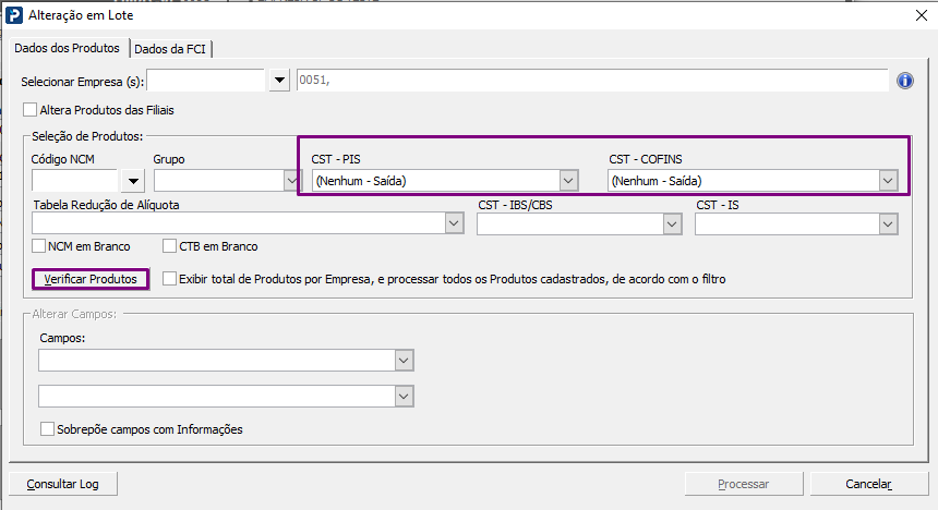 c. Ao utilizar os filtros CST - PIS : (Nenhum - Entrada) e CST - COFINS: (Nenhum- Entrada) ou CST - PIS : (Nenhum - Saída) e CST - COFINS: (Nenhum- Saída) e clicar em verificar produtos, considere que: