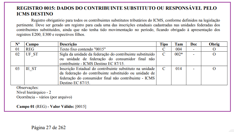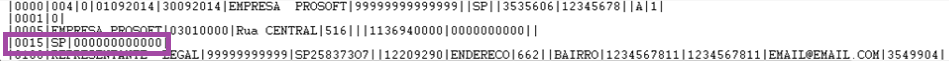 Exemplo: o arquivo possui o registro 0015 apenas para uma UF: