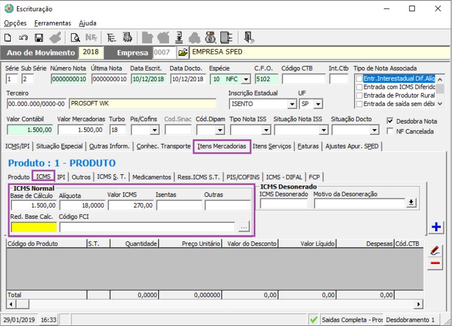 3- Para a geração dos registros C370 e C390 é necessário informar o item de mercadoria da nota fiscal conforme o lançamento da aba “ICMS/IPI”.