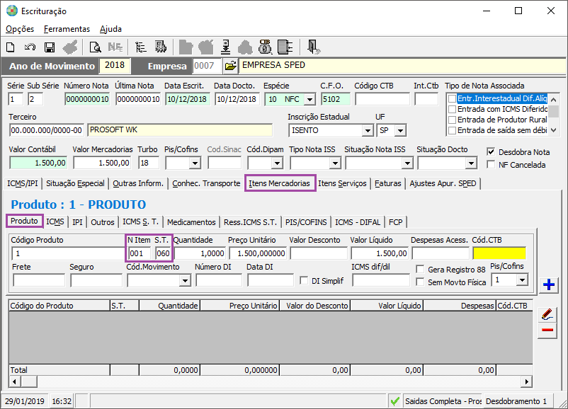 1- Acesse: Fiscal > Documentos de Entradas e Saídas > Escrituração