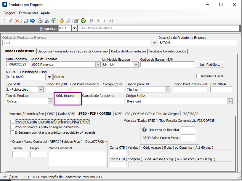 Para digitação manual do Bloco K é necessário ter os produtos e insumos cadastrado na rotina de Produtos por Empresa.