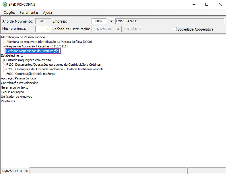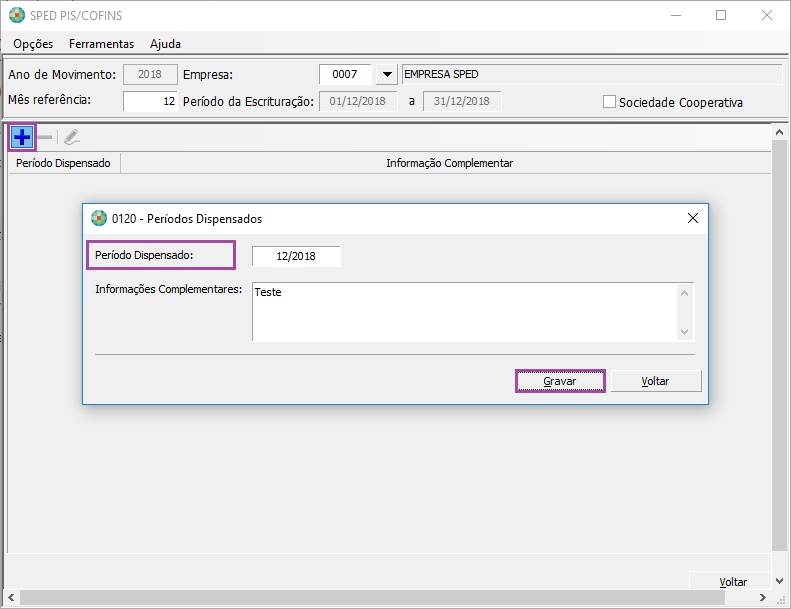 10- O sistema gera um registro 0120 para cada mês informado em Períodos Dispensados da Escrituração