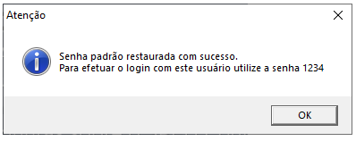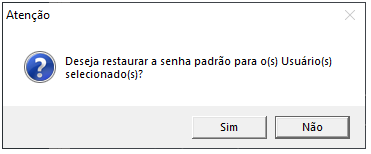 4- Será apresentada a mensagem para confirmação. Após clicar: Sim a será alterado para a senha padrão: 1234