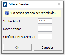 6- Realize o login de acesso utilizando a senha padrão 1234, posteriormente será apresentada a seguinte tela para redefinir a senha