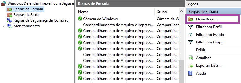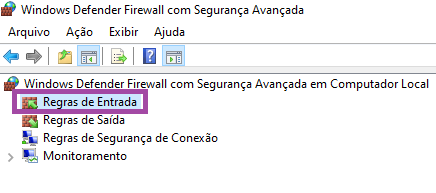 2 - Para liberar portas de entrada, clique em Regras de Entrada, do lado esquerdo da tela.