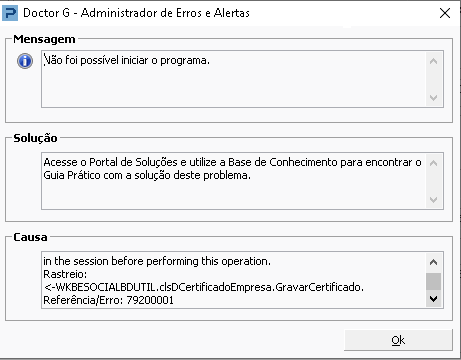 Descrição: Please create a master key in the database or open the master key in the session before performing this operation. Rastreio: <-WKBESOCIALBDUTIL.clsDCertificadoEmpresa.GravarCertificado. Referência/Erro: 79200001