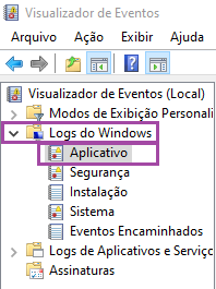 2 - Na página que irá abrir, selecionar as opções "Log do Windows" → "Aplicativo"