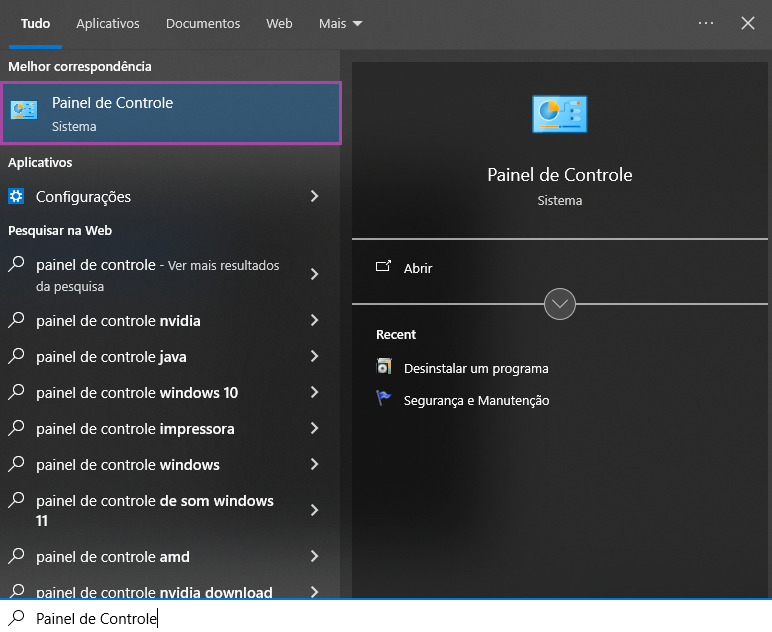 4 - Tendo alguma rotina com falha no Microsoft Net Framework, realize o acesso na barra de tarefas digitando "Painel de Controle"