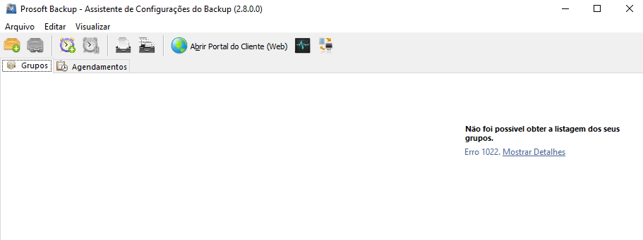 Ao abrir o Agendamento do Prosoft Backup, é remetida a mensagem: