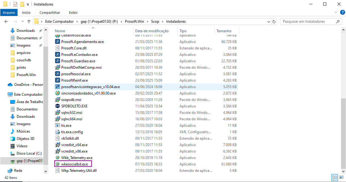 3 - Também é possível executar o instalador acessando o diretório: ?\prosoft.win\scop\instaladores.