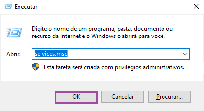 7- Ao finalizar, acesse os Serviços do Windows [pressione as teclas Windows +R e digite 'servcies.msc']