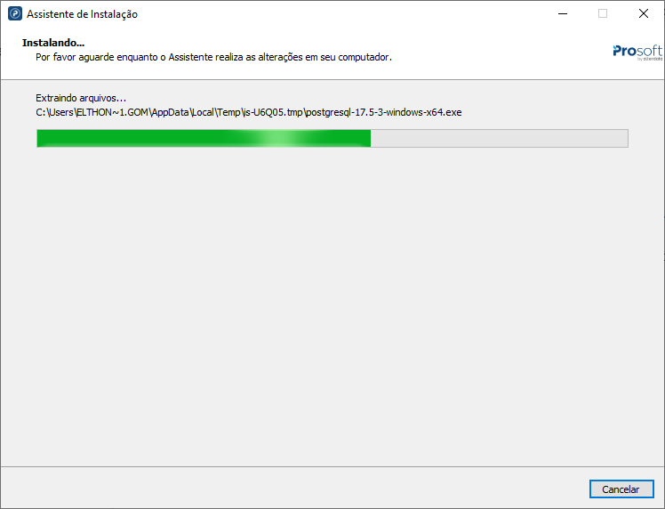 Ao iniciar a atualização Patch09ServicePack18V06.exe do Prosoft, também será carregado o setup da instalação do Prosoft.PostgreSQL automaticamente.