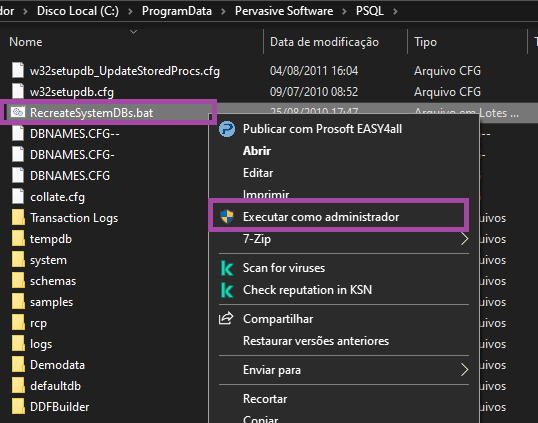 9 - Como último passo, execute como administrador o arquivo RecreateSystemDBs.bat.