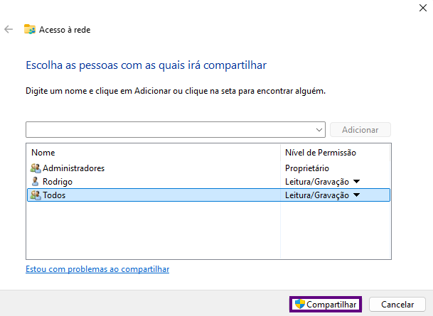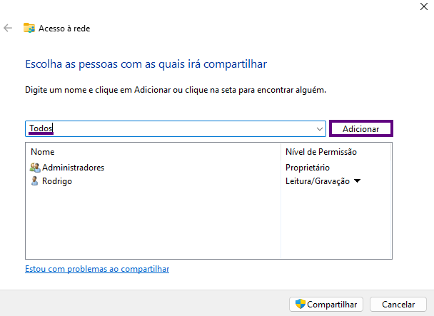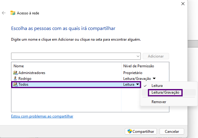 Auxiliar o usuário a dar permissão em pastas e compartilhar a pasta na rede.