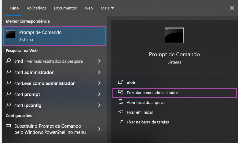 2 - Acesse o CMD e digite o comando hostname (para obter o nome do servidor) ou ipconfig (para obter o IP do servidor) e tecle Enter.