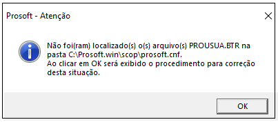Não foi(ram) localizado(s) o(s) arquivo(s) PROUSUA.BTR na pasta ?:\Prosoft.win\scop\prosoft.cnf.
