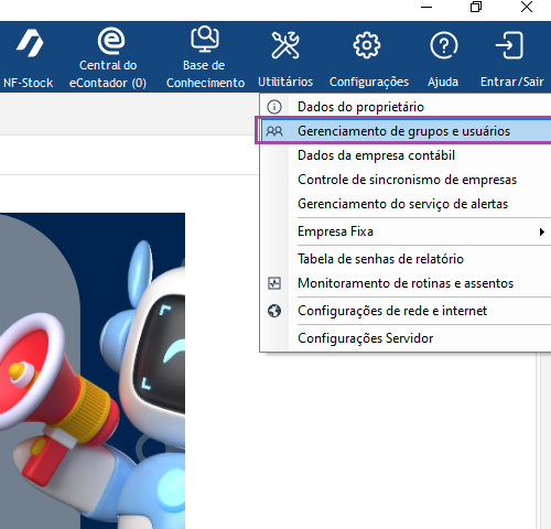 1- Acesse: Configurações > Gerenciamento de grupos e usuários