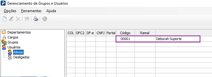 2- Clique em Ativos e dê um duplo clique em cima do usuário desejado