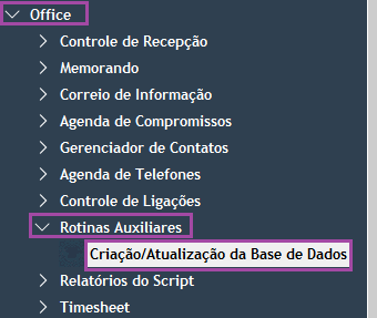 3- Dentro do GAP acesse: Office > Rotinas Auxiliares > Criação/Atualização da Base de Dados