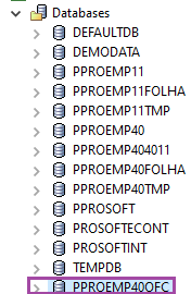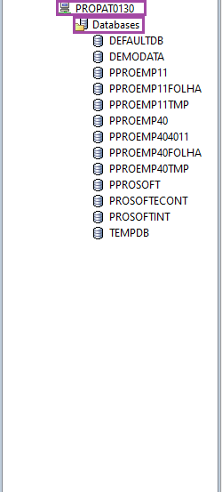 2- Dê dois cliques no Nome do Servidor (no exemplo é PROPAT0130) e dê dois cliques na pasta Databases: