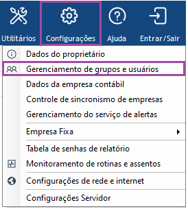 1- Acesse Configurações > Gerenciamento de Grupos e Usuários