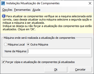 - Desmarque a opção "Forçar cópia e atualização de componentes já atualizados".