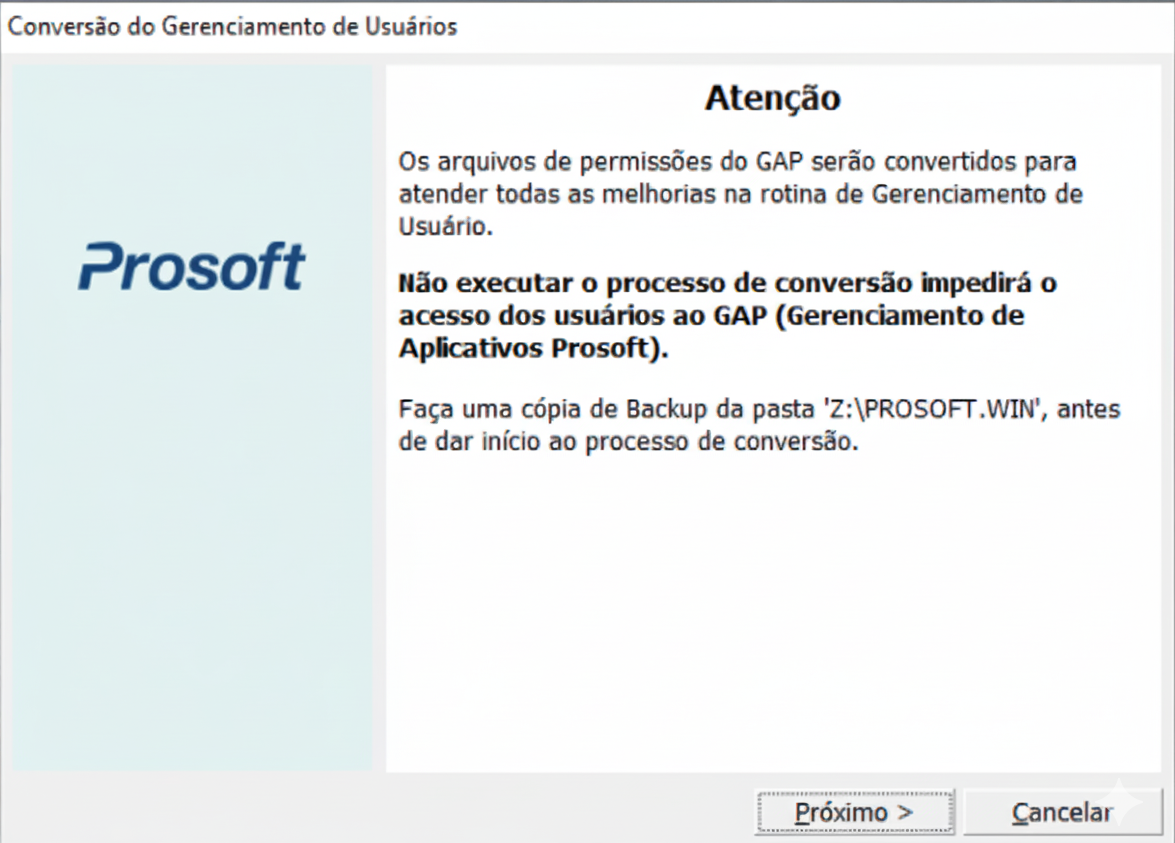(Este artigo tem como objetivo auxiliar na correção do acesso ao Gerenciador de Aplicativos Prosoft (GAP) quando abre a Conversão de Gerenciamento de Usuários em apenas uma máquina.)