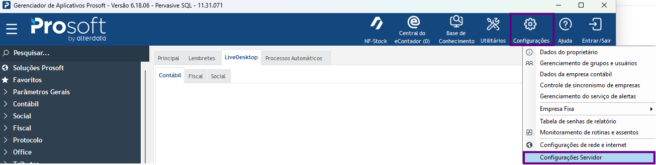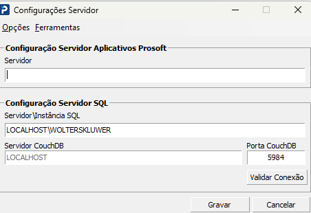 1- Acesse no GAP > Configurações > Configurações do Servidor SQL