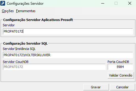É necessário realizar o ajuste se estiver com erro no nome do servidor ou compartilhamento Prosoft.
