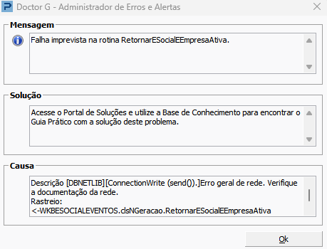 Descrição [DBNETLIB][ConnectionWrite (send()).]Erro geral de rede. Verifique a documentação da rede.