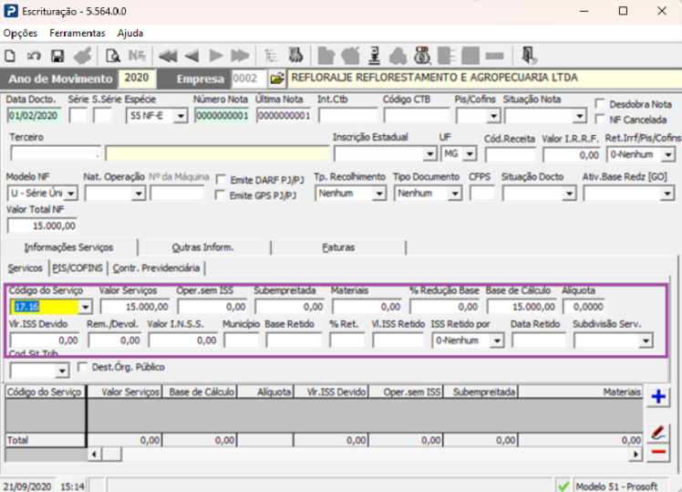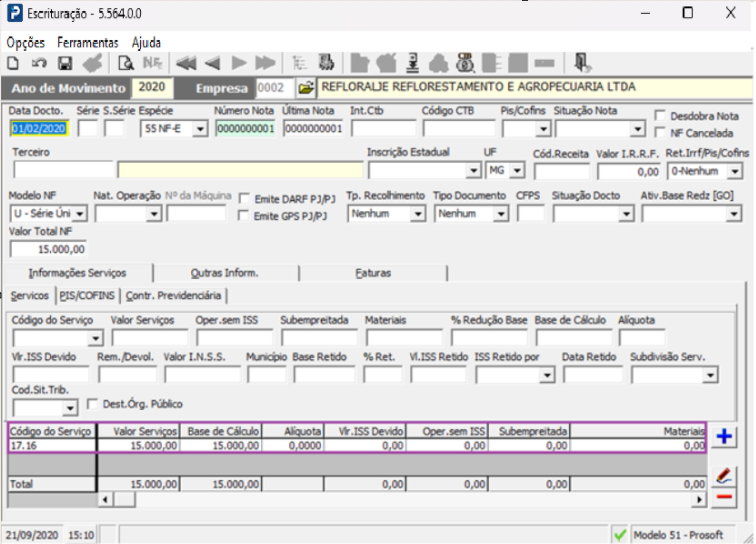 Erro ao inserir serviço xxxx no arquivo Tabela: notaservEEEEAA. The record has a key field containing a duplicate key value (Btrieve Erro 5) ao gravar a nota na escrituração.