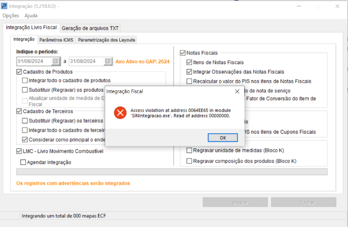 Mensagem Integração GID: Access Violation at Address 0064ECAC in module