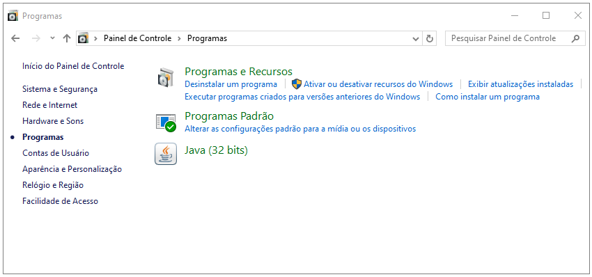 ou acesse: Menu iniciar > Painel de Controle > Programas > Programas e Recursos