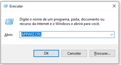 1- Acesse o menu iniciar > Executar ou Windows +R e digite: "APPWIZ.CPL"