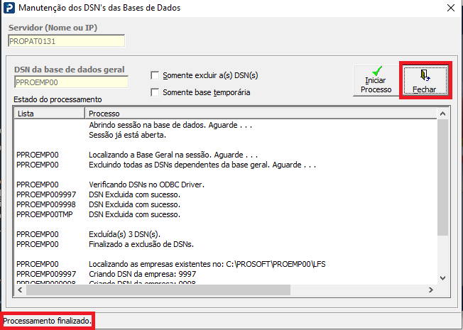 Só será restabelecidas as conexões das empresas que já possuam movimento fiscal e sua pasta conste em ?:\PROEMPxx\LFS\(Código da Empresa)