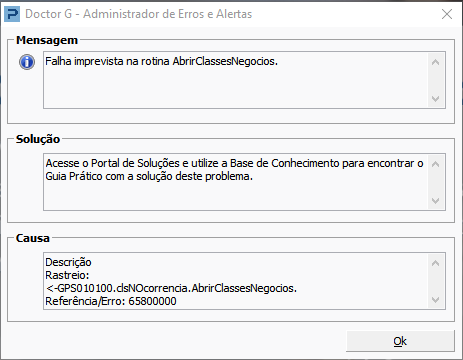 Ao tentar abrir a rotina "Cadastro de Funcionários" apresenta a falha: