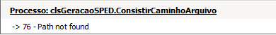 "Processo: clsGeracaoSPED.ConsistirCaminhoArquivo