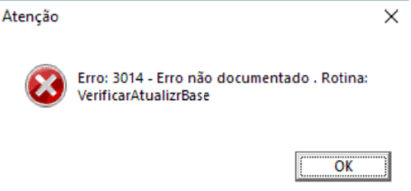 3014 - Erro não documentado. Rotina: VerificarAtualizarBase.