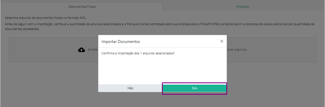 6 - Finalizado o processo é apresentado o número de documentos fiscais importados com sucesso.
