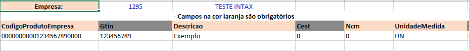 5 - Preencha a planilha conforme o modelo gerado. São obrigatórias as informações de Código, Descrição, NCM e Unidade de Medida.