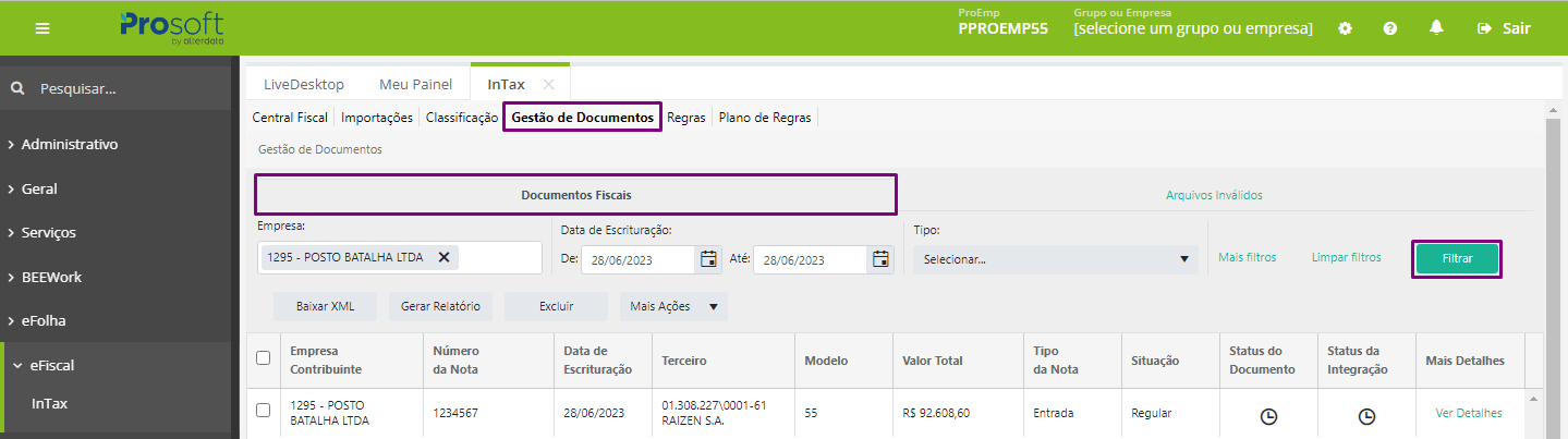 2 - Informe os campos para consulta dos documentos e clique em Filtrar.