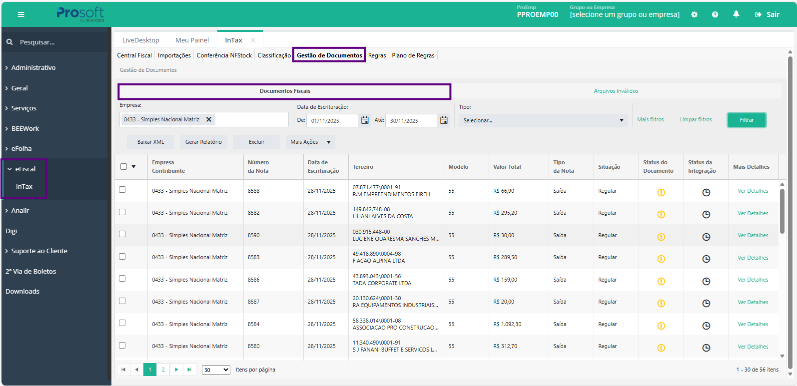 2 - Acesse Portal de Soluções > eFiscal > Intax > Gestão de Documentos > Documentos Fiscais.