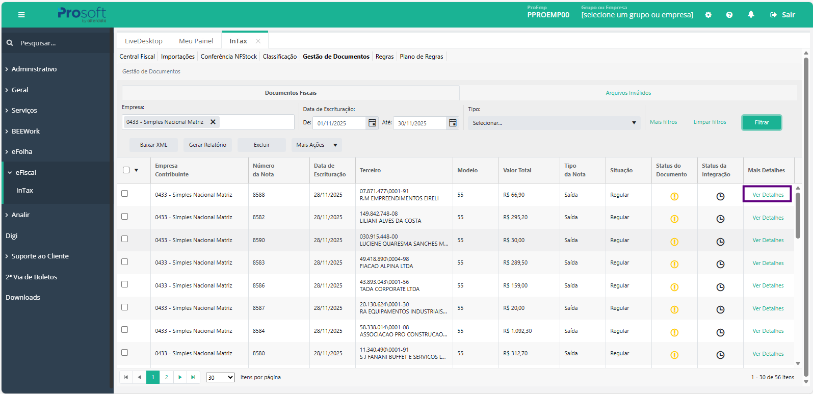 4 - Será carregado no grid de consulta, todos os documentos identificados conforme o filtro aplicado.