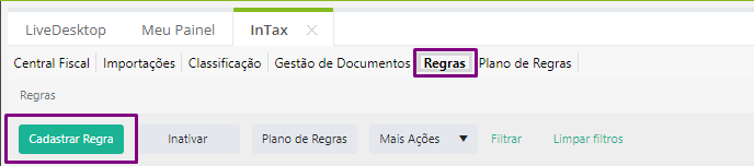 Contexto: Este artigo tem por objetivo demonstrar como cadastras regras no Intax. Regras são necessárias para o funcionamento do Intax, a partir delas serão aplicadas as alterações e validações de dados dos documentos fiscais.