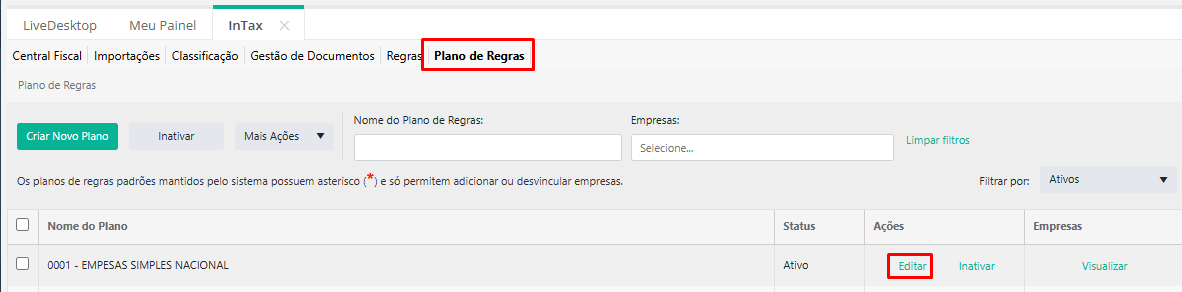 Contexto: Este artigo tem por objetivo demonstrar como vincular e desvincular Regras e Empresas em um Plano de Regras.