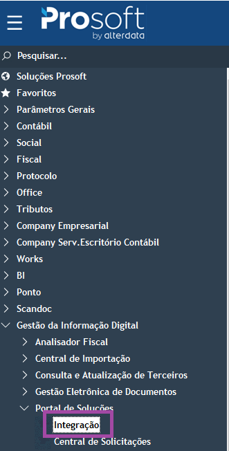 5 - Acesse Gestão da Informação Digital > Portal de Soluções > Integração