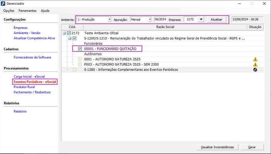 Estará habilitado para gerar o S-1200 e o S-1210 dos funcionários que teve quitação complementar com pagamento na competência: