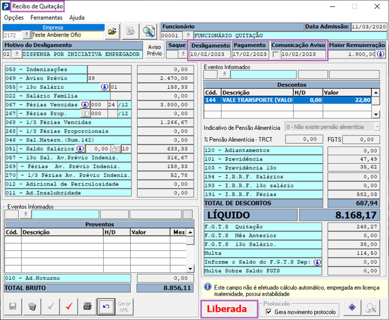2- Verifique se existe Recibo de Quitação processado e liberado