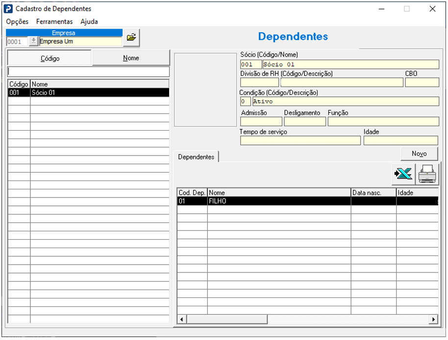 2- Selecione o Código do Sócio e com duplo clique selecione o Dependente cadastrado.