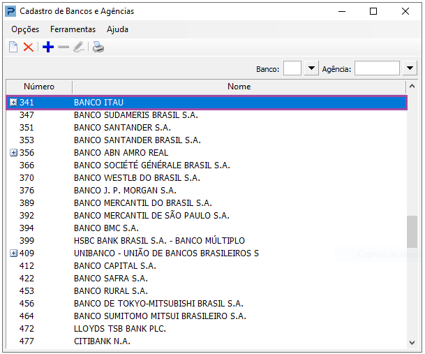 2 - Verifique se o Banco e as Agências estão devidamente cadastrados